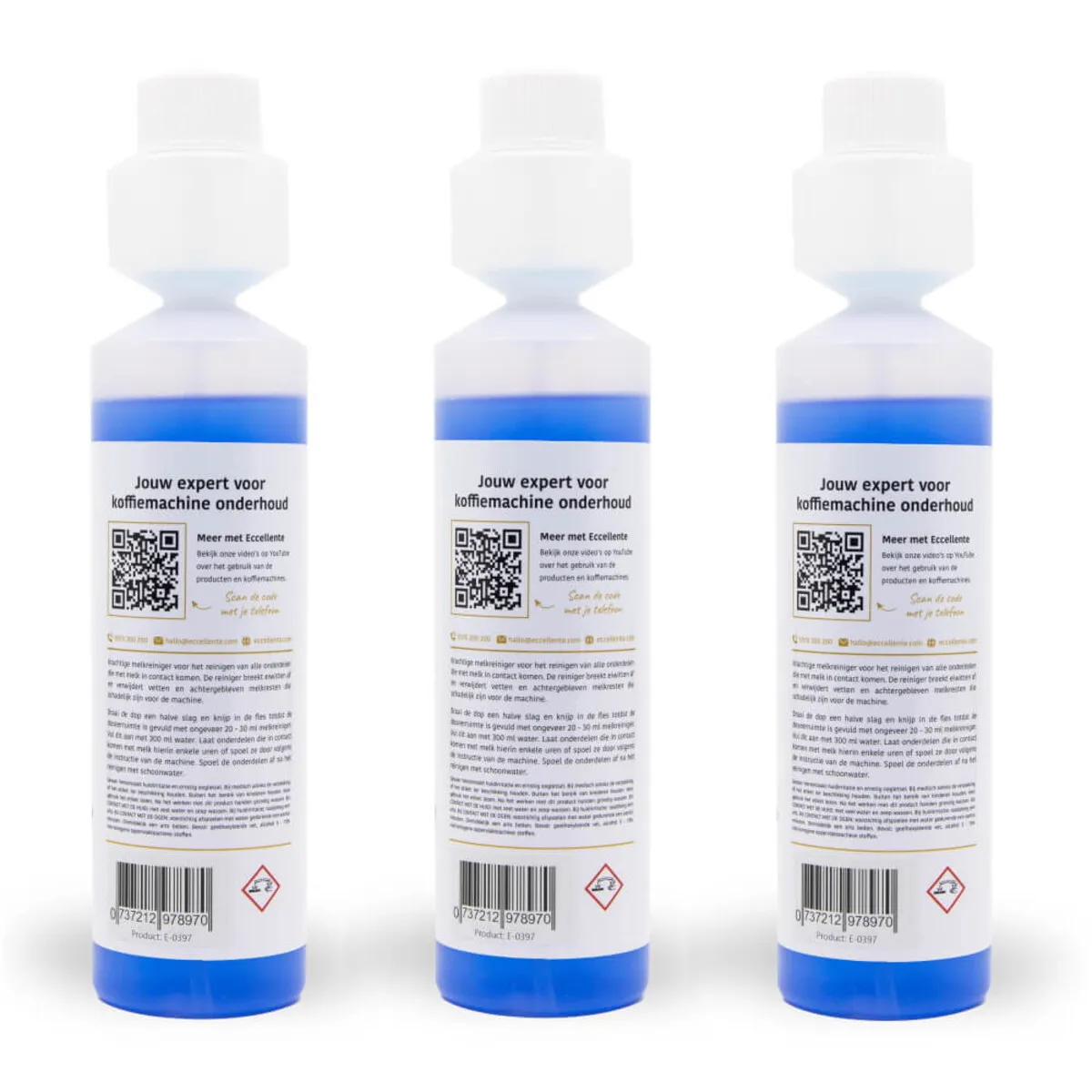 3 bottles of 250ml Eccellente Milk System Cleaner, total 750ml.